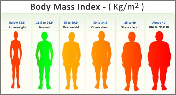 Berechnung: Gewicht in Kilogramm geteilt durch das Qaudrat der persönlichen Größe in Meter – ein BMI im Bereich von 18,5 bis 25 ist „normal“ unter 16 darf man sich Hungerhaken nennen und über 30 hat man wirklich schwere Knochen.